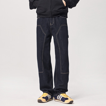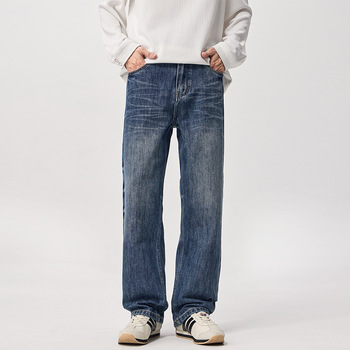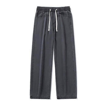Venta al por mayor de fábrica, pantalones vaqueros de estilo recto para hombre, pantalones elásticos de algodón personalizados para primavera y verano para ropa de calle