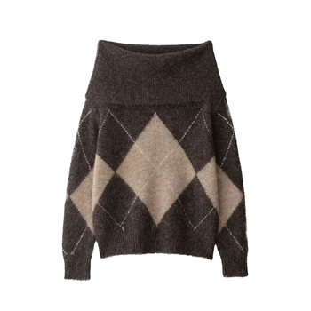 Suéter rombal sin tirantes elegante de otoño 2025 para mujer, jerséis informales combinables de manga larga Vintage, método de tejido de punto