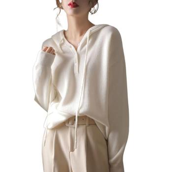 Özelleştirilebilir fabrika kadın örme dişli Hoodies tek göğüslü resmi tarzı kış için ön Logo ile